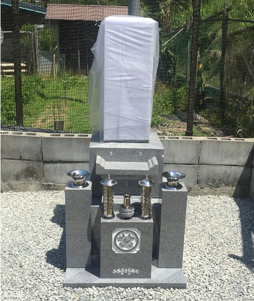 亡くなられたお父様のために、息子様が建てられました。お施主様のご意見をもとに設計させていただき、気に入っていただけるか少し心配でしたが、思い通りのお墓ができたととても喜んでいただきました。